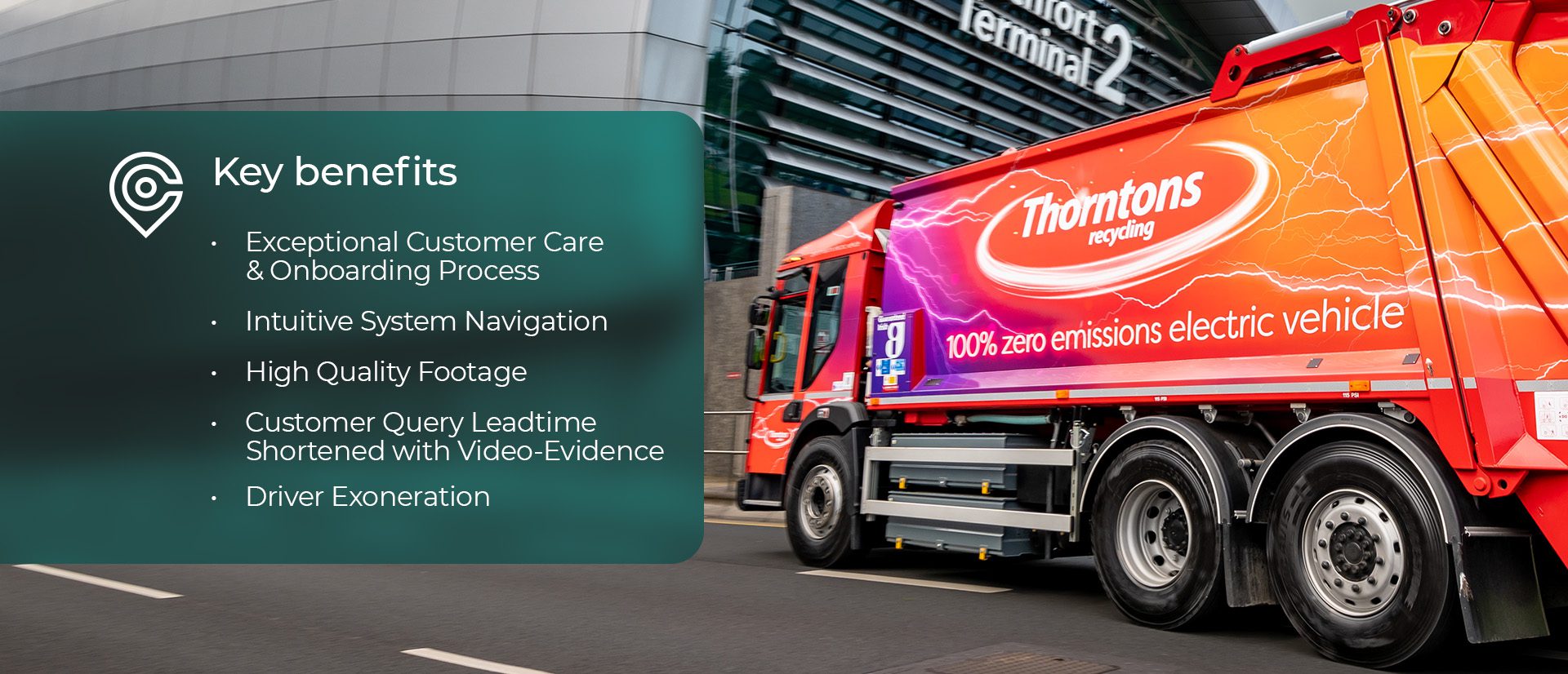 By utilizing the CameraMatics system endless amounts of time has been saved by Thorntons Recycling when handling queries from the public. Being able to review footage captured means that CameraMatics acts as an independent witness providing indisputable evidence on Thorntons Recycling behalf.